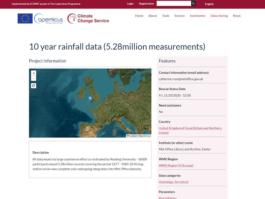 Het C3S Datarescue Portal is ontworpen om het conserveren van weer- en klimaatgegevens van over de hele wereld te vergemakkelijken en te coördineren. De service draait op een online gebruikersgebaseerd systeem dat toegang biedt tot informatie over verleden, huidige en geplande gegevensreddingsprojecten, evenals tools en begeleiding om elke fase van het gegevensreddingsproces te vergemakkelijken.